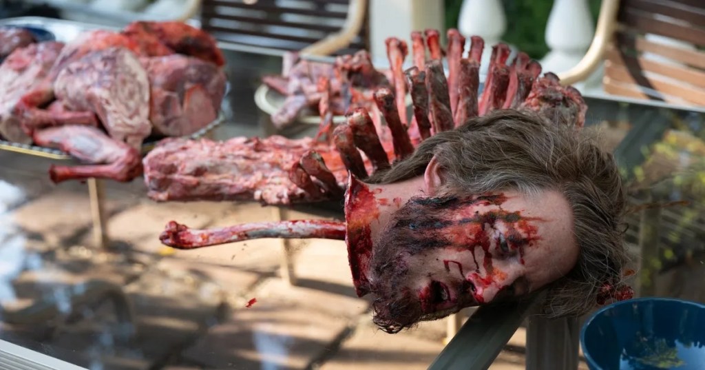 Studio 666 plays the same trick. It starts out as what feels like a generic 90s slasher knockoff that takes a left turn into the kind of zany, funhouse horror that best of the 80s and 90s gave us. It takes its time getting there too but in a good way. We get to see the anxiety-ridden, ego-driven mess that is Grohl as he tries to create a new album. To make this album special Grohl wants a sound no one has ever heard before. The demon in the basement of the murder house, once owned by an up and coming thrash metal band called Dream Widow until the lead singer went nuts and murder/suicided the band, offers Grohl exactly what he is asking for. It even offers them up a new song, theirs for the recording as long as they finish it. From there we get an escalating series of gags, heavy on body horror and corn syrup, that lead us to a carnage filled, blood soaked finale that winds up so much darker than I could have anticipated at the light hearted start to the film. It’s a great time and one that goes so much harder than it had any reason to. The budget was put into the practical effects and it shows as each death gets bigger and better and the chances of survival get bleaker and bleaker. I wish I had gotten around to watching a lot sooner, much the same way I regretted not seeing the Foo Fighters until my late 30s. Both are fun experiences and worth checking out.